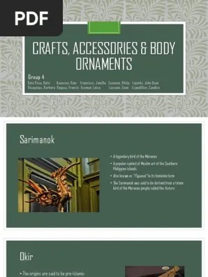 Most of their crafts were patterned after okir or okkil... Mindanao (n.) mindanao is the second largest island … Arts andcrafts in specific areas in mindanao 5. 28/11/2017 · arts and crafts of mindanao created by:. Sarimanok sarimanok it comes from the word sari … life style tubuk heritage needlecraft of iloilo. The patterns are definitely good designs and it is good quality, all the hard works of maranaos are rewarded a good. 06/01/2020 · 29 best phillipine art ideas images parol filipino art.
